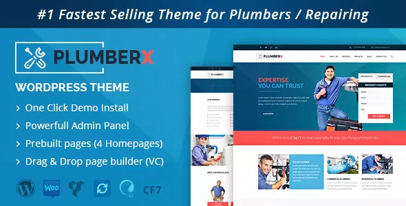 The Plumber theme is specially designed for plumbers, electricians, craftsmen, roof repairs and other repair and construction companies.