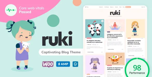 Captivate your audience with Ruki; A striking Gutenberg optimized WordPress theme for personal bloggers and content creators. With an abundance of theme options, numerous layouts, beautiful post styles and extensive color options Ruki provides a magnificent showcase for your content.