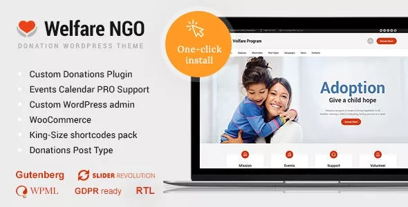 Welfare NGO Charity Wordpress Theme is created for non-profit websites, like governmental social program websites, NGO, Donation and fundraising websites, etc.