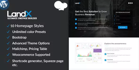LandX - Multipurpose WordPress Theme, Software Application Landing Pages Builder for Marketing Agency