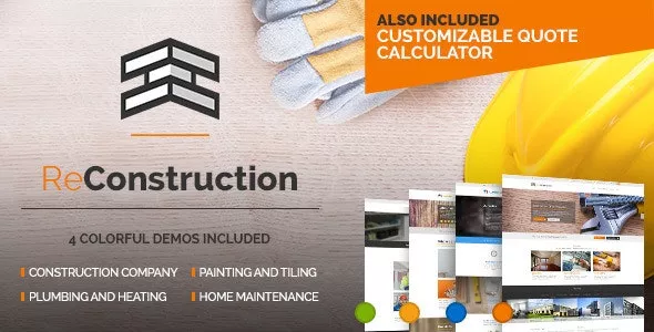 ReConstruction is a construction & building WordPress theme with focus on construction, building, plumbing, heating, painting and tiling as well as home maintenance companies. It is fully Responsive, Retina Ready and Easy to customize.