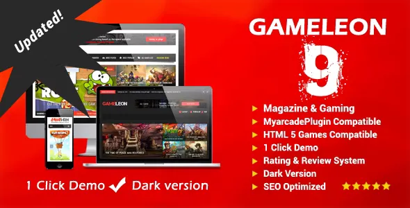 Gameleon is a WordPress arcade theme for online games, gaming, HTML5 games, magazine, newspaper, reviews or blogging site.