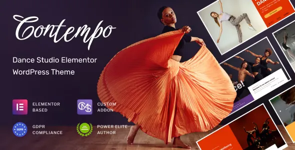 Contempo is Elementor Dance School Theme, and comes with a custom Cmsmasters’ Masterpiece Elementor addon, which provides a full pack of premium functionality: theme settings, premium widgets and plugins that are bundled with the theme.