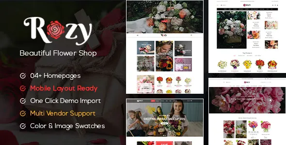 Rozy is a flexible multi-purpose WordPress theme that is suitable for any online stores and the best choice for flower boutique, florist shop, gift, souvenir or decoration store, jewelry, or handmade products.