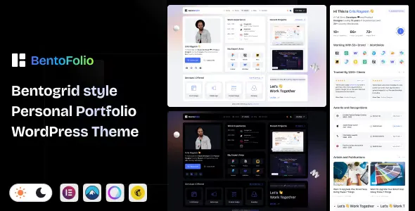 Do you plan to establish your portfolio website? You are in the right spot. Bentofolio - Bentogrid style Personal Portfolio WordPress Theme is developed for a wide range of online professionals, including product designers, writers, designers, web developers, programmers, content creators, photographers, marketers, agencies, startups, small business owners, tech entrepreneurs, creatives, any other professions. Modern and clean theme with a stylish dark style to help you establish a web presence. Includes: Different layouts, Dark and Light, Live UI Switcher Mode, One-Click Demo Import, Transitions page animations, and Elementor Page Builder. No coding skills are required. Creating Personal Portfolio and CV websites should no longer be difficult.