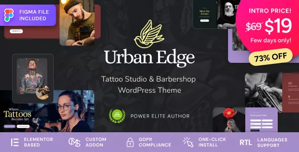 Urban Edge is a stylish and bold Barbershop & Tattoo Studio WordPress Theme, designed for modern grooming and ink artistry studios. This modern barbershop WordPress Theme offers 2 ready-made demos for light and dark website versions, each with 2 homepages. You can choose a design that suits your needs best. Each demo with all demo content included, offering a full set of dedicated niche pages, like tattoo specialists profiles, prices page, salon services post type, appointment booking, blog post templates, beauty products shops, etc.